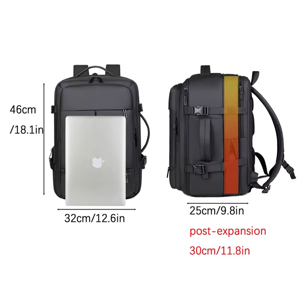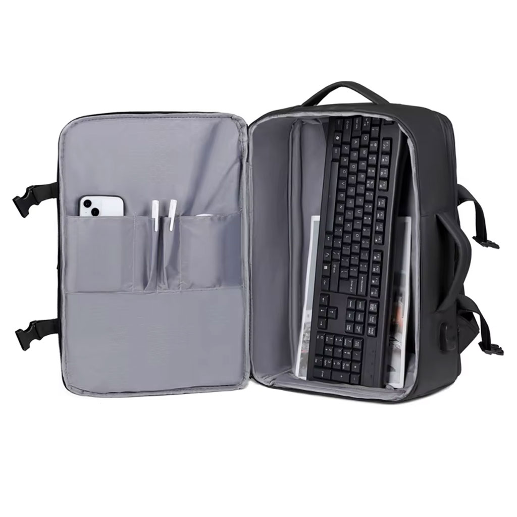 Vår USB-ryggsäck gör det enkelt att ladda mobilen på språng, och med sina mått 46×32×25 cm (utökningsbar med 5 cm) finns gott om plats för laptop, dokument, kläder och tillbehör. Tillverkad i slitstarkt coated Oxford-material med en sofistikerad finish som håller över tid.